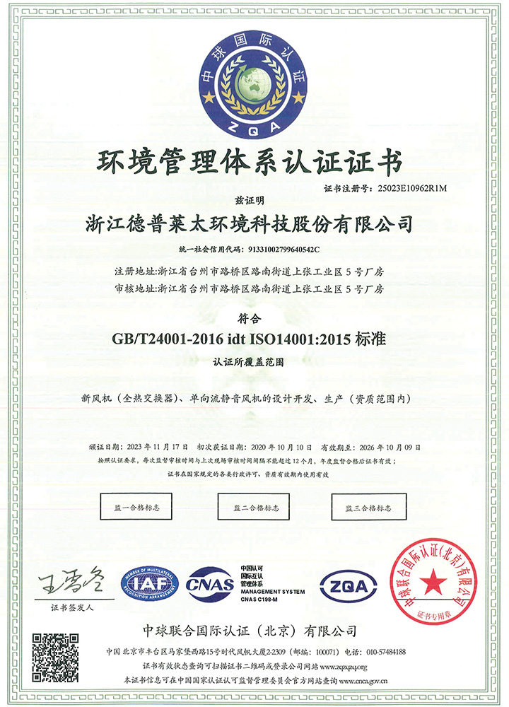浙江德普萊太環(huán)境科技股份有限公司始建于2007年,是一家行業(yè)領(lǐng)先的集研發(fā)、設(shè)計(jì)、生產(chǎn)與銷售為一體的智能新風(fēng)系統(tǒng)品牌商與服務(wù)商。擁有資深的研發(fā)團(tuán)隊(duì),以創(chuàng)造健康的生活環(huán)境為企業(yè)使命,致力于為客戶提供全面的室內(nèi)新風(fēng)系統(tǒng)及空氣凈化專業(yè)解決方案。在仙居設(shè)有全資子公司--浙江普瑞泰環(huán)境設(shè)備有限公司。公司擁有功能設(shè)施齊全的標(biāo)準(zhǔn)化廠房和先進(jìn)的生產(chǎn)、檢測設(shè)備,建有符合國家標(biāo)準(zhǔn)要求的噪音實(shí)驗(yàn)室、焓差實(shí)驗(yàn)室。主要產(chǎn)品為熱回收新風(fēng)機(jī)(全熱交換器)、環(huán)控一體機(jī)、單向流新風(fēng)機(jī)、除濕新風(fēng)機(jī)及凈化熱回收新風(fēng)機(jī)、被動(dòng)式建筑新風(fēng)系統(tǒng)等核心產(chǎn)品,廣泛應(yīng)用于住宅、別墅、寫字樓、酒店、廠房、地下室及學(xué)校、醫(yī)院等公共建筑、場所。緊跟國家雙碳戰(zhàn)略開發(fā)的超低能耗建筑(被動(dòng)式建筑、近零能耗建筑)用環(huán)控一體機(jī),產(chǎn)品集空調(diào)、新風(fēng)、凈化、除濕等為一體,具有低噪聲、高效節(jié)能、恒溫、恒濕、恒氧等優(yōu)點(diǎn),產(chǎn)品性價(jià)比高,通過德國PHI認(rèn)證和康居認(rèn)證,在河北、山東、浙江、北京等地完成了多個(gè)代表性超低能耗住宅項(xiàng)目,受到國內(nèi)外超低能耗建筑領(lǐng)域的權(quán)威認(rèn)可。
